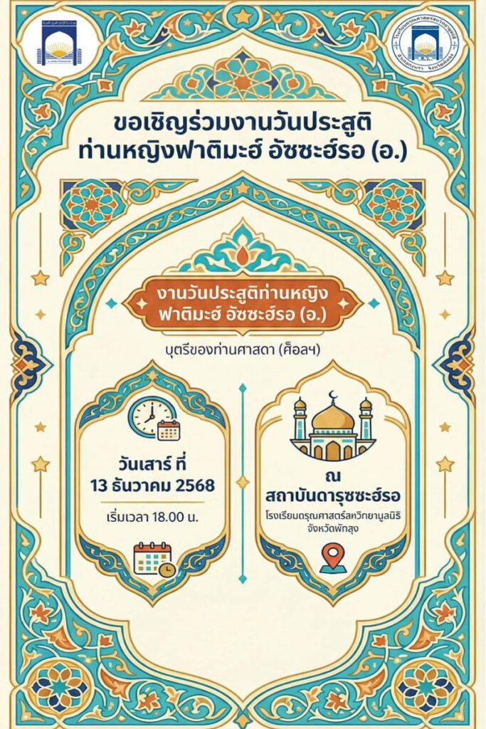 เนื่องในโอกาสวันแห่งวีลายัต อีดฆอดีรคุม ขอเชิญพี่น้องผู้ศรัทธาทุกท่านร่วมส่งคำอวยพร(กลอน , โคลง , บทกวี ) เข้าประกวด ผู้ชนะเลิศจะได้รับของที่ระลึกจาก มูลนิธิอัลคูอี้ย์ ประเทศไทย ***ประกาศผล 14/6/68