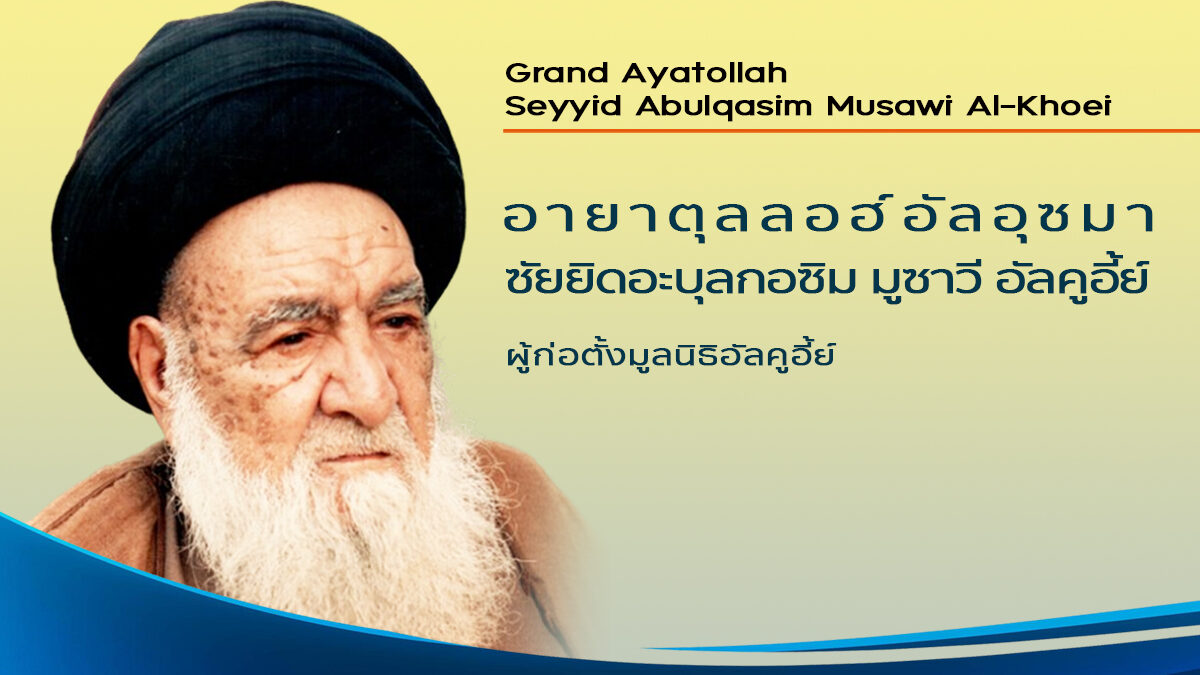 อายาตุลลอฮฺอัลอุซมาซัยยิดอบุลกอซิม มูซาวี อัลคูอี้ย์ (เราะฮิมะฮุลลอฮ์) เกิดในประเทศอิหร่าน เมื่อวันที่ 15 รอญับ 1317 ฮ.ศ. / ค.ศ. 1899 และมรณภาพที่เมืองนะญัฟ อัลอัชรัฟ ประเทศอิรัก เมื่อวันที่ 8 ซะฟัร 1412 ฮ.ศ. (วันที่ 8 สิงหาคม ค.ศ. 1992) ท่านได้รับการศึกษาในวิธีการดั้งเดิมของเทววิทยาชีอะห์จากอุละมาหรือผู้รู้ที่มีชื่อเสียง ท่านเข้าร่วมสถาบันเทววิทยาชั้นนำระดับโลกในเมืองนะญัฟ อัลอัชรัฟในปี 1912 ซึ่งเป็นปีที่ท่านย้ายจากอิหร่าน ตั้งแต่ยังเยาว์ท่านได้บรรลุถึงระดับของ “อิจติฮาด” ซึ่งเป็นกระบวนการในการตัดสินเกี่ยวกับบทบัญญัติศาสนาโดยใช้เหตุผลและหลักการของนิติศาสตร์ การบรรลุขั้นตอนนี้จะได้รับการยกย่องให้มีตำแหน่งว่า “อายาตุลลอฮฺ”