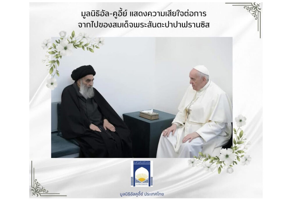 ประชาสัมพันธ์มูลนิธิอัล-คูอี้ย์ แสดงความเสียใจต่อการจากไปของสมเด็จพระสันตะปาปาฟรานซิส มูลนิธิอัล-คูอี้ย์ แ