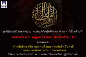 เนื่องในโอกาสวันแห่งวีลายัต อีดฆอดีรคุม ขอเชิญพี่น้องผู้ศรัทธาทุกท่านร่วมส่งคำอวยพร(กลอน , โคลง , บทกวี ) เข้าประกวด ผู้ชนะเลิศจะได้รับของที่ระลึกจาก มูลนิธิอัลคูอี้ย์ ประเทศไทย ***ประกาศผล 14/6/68